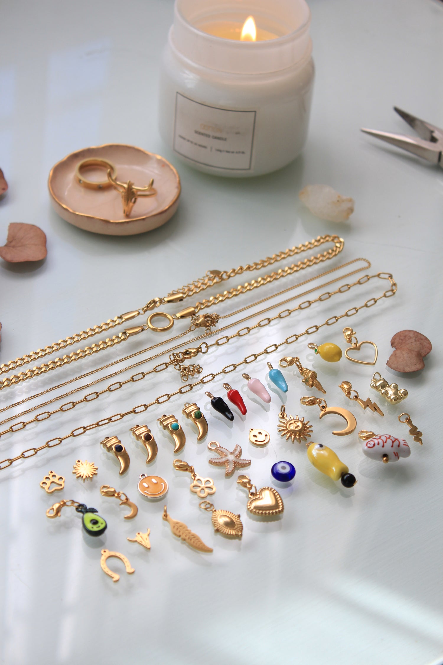 Puedes elegir tu cadena, sus charms, y diseñar tu nuevo colgante favorito.